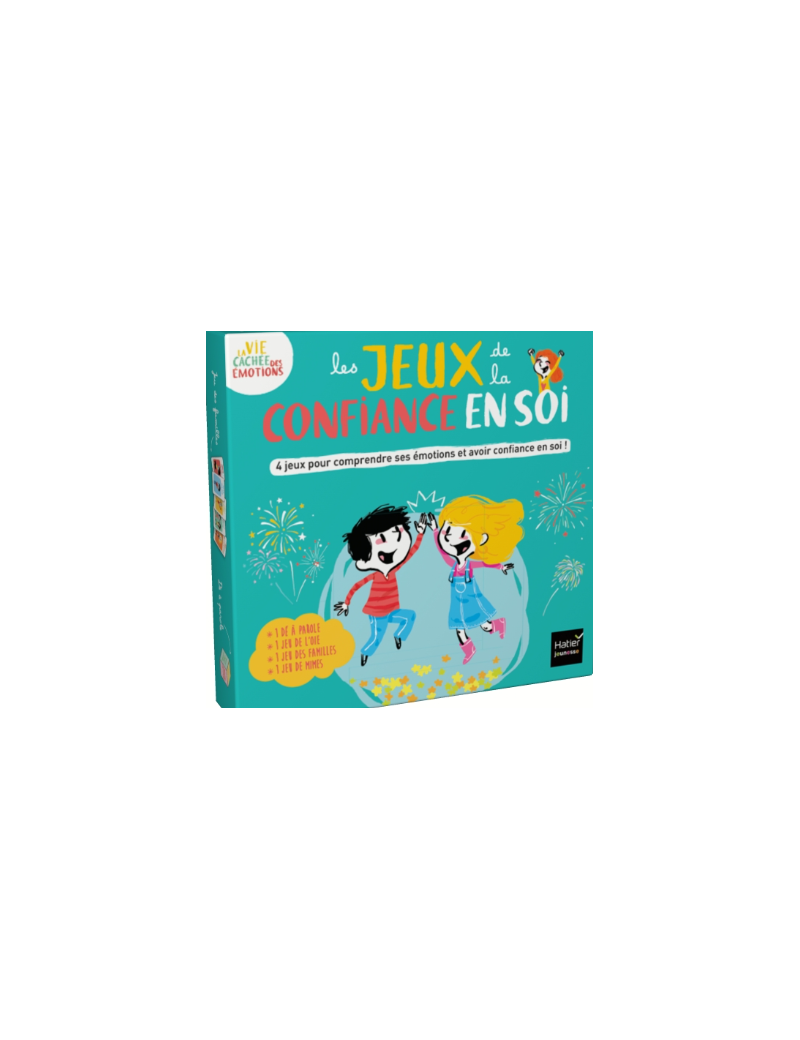 Une boîte qui contient 4 jeux pour comprendre ses émotions et développer sa confiance en soi, pour les enfants dès 6 ans et leur entourage ! Un dé à parole pour encourager l’enfant à s’exprimer et développer une image positive de lui-même, un jeu des familles pour identifier et développer les comportements qui font grandir la confiance, un jeu de mimes pour prendre de l’assurance et un jeu de l’oie pour découvrir des « outils » qui développent la confiance en soi.